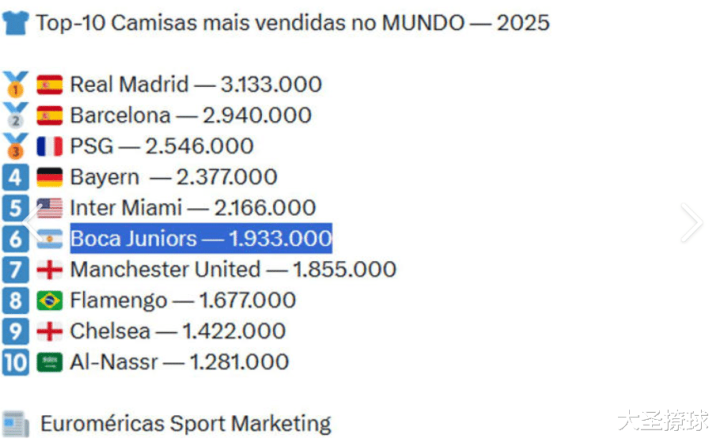 根据Euroméricas Sport Marketing的报道,在商业价值方面,梅西要超过C罗,特别是在一个重要的指标——球衣销量——上。皇马以超过310万件球衣继续领跑。不过,最大的惊喜来自第5位,迈阿密国际超过了C罗的利雅得胜利。梅西所在的俱乐部售出了216.6万件球衣,仅次于巴萨、皇马、博卡青年和弗拉门戈。这说明虽然年龄增长并且效力的联赛被认为“竞争力不足”,但梅西的吸引力依然强大。