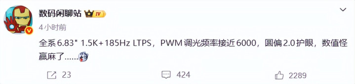 全系搭载 6.83英寸直屏,刷新率竟然冲到 185Hz,并且还是LTPS材质,支持接近 6000Hz的PWM调光,甚至用上了圆偏振光护眼技术。